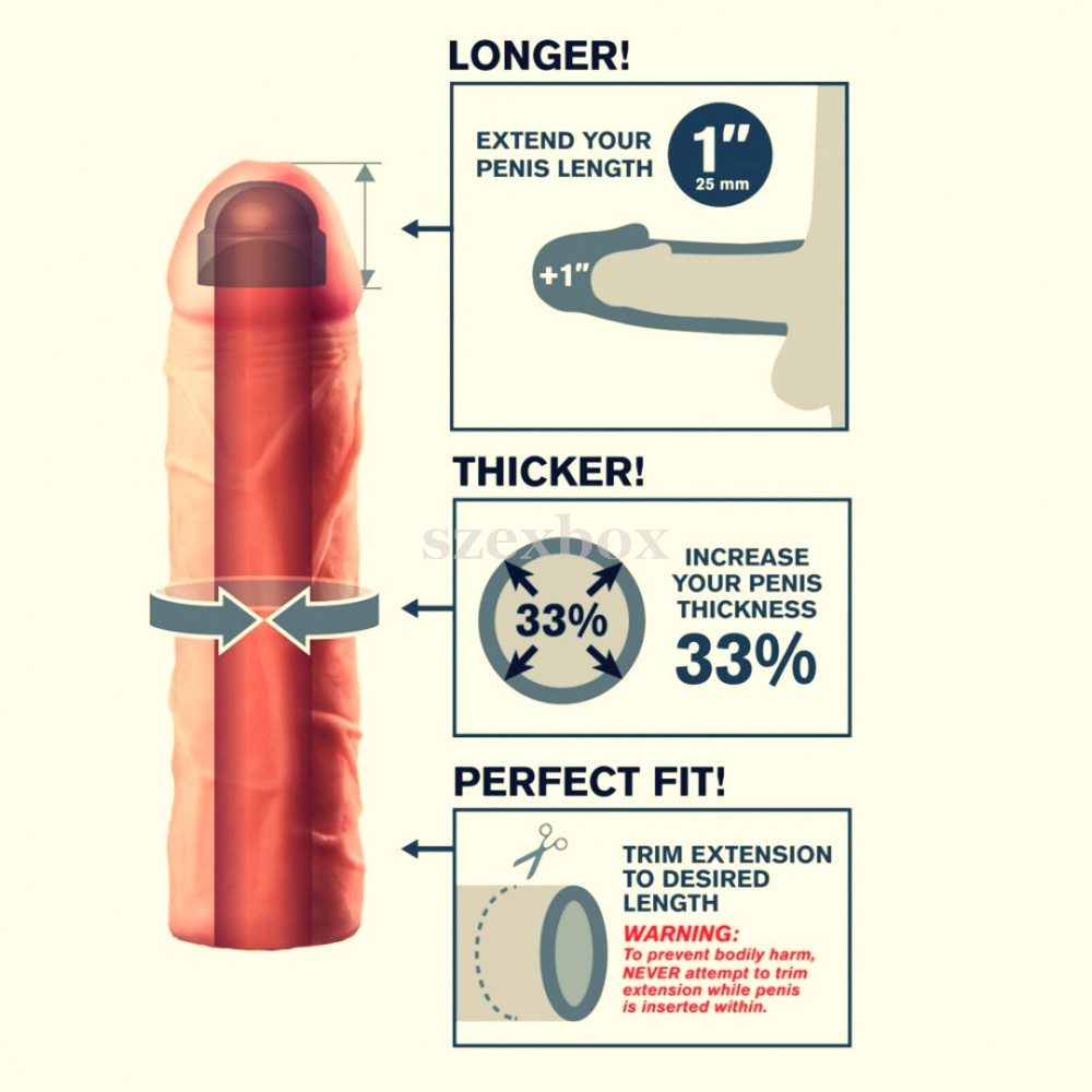 X-TENSION Perfect 1 - élethű péniszköpeny (17,7cm) - natúrÉlethű anyagú péniszfeltét, mely fájdalommentesen növeli a pénisz méretét! Akár 33%-kal nagyobb méret!33%-kal markánsabb átmérő és 2,5cm-rel hosszabb hímtag!Miért jó?
