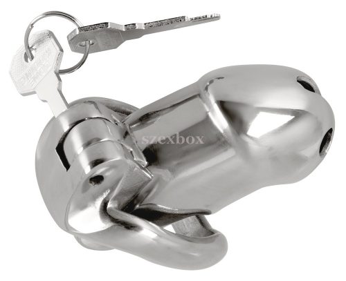 Termék specifikációk, tulajdonságok:rozsdamentes acél kivitelezéslakattal és két kulccsal ellátvaketrec teljes hossza: 9cmketrec belső átmérője: 3,7cmketrec külső átmérője: 4cmgyűrű belső átmérője: 5,5cmgyűrű vastagsága: 1cmtömeg: 289ganyaga: acélTisztítási javaslat:Kímélő szappanos, langyos vízzel alaposan át kell mosni, majd leöblíteni és hagyni megszáradni.Ajánlott: Speciális tisztítószer használata (06305000000) - külön rendelhető.