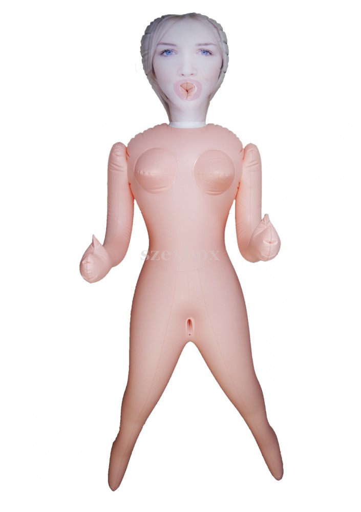 Életnagyságú, felfújható baba, 3 szerelemnyílással (száj, vagina, ánusz).