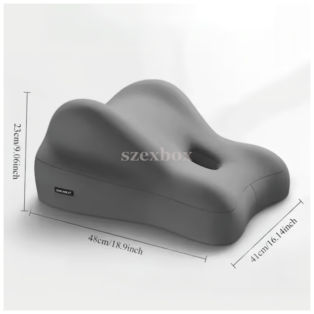 A párna magas minőségű memóriahabból készült, amely alkalmazkodik a test formájához, miközben megtartja stabil szerkezetét. A középen elhelyezett nyílás biztonságosan rögzíti a különböző méretű dildókat vagy vibrátorokat, így biztosítva a kéz nélküli használatot. Mérete 48 × 41 × 23 cm, amely optimális alátámasztást nyújt különböző testhelyzetekben. A puha textilborítás kellemes érzetet biztosít a bőrnek, ugyanakkor fontos, hogy nedvességtől védve legyen. A könnyű kialakítás lehetővé teszi az egyszerű mozgatást és tárolást.