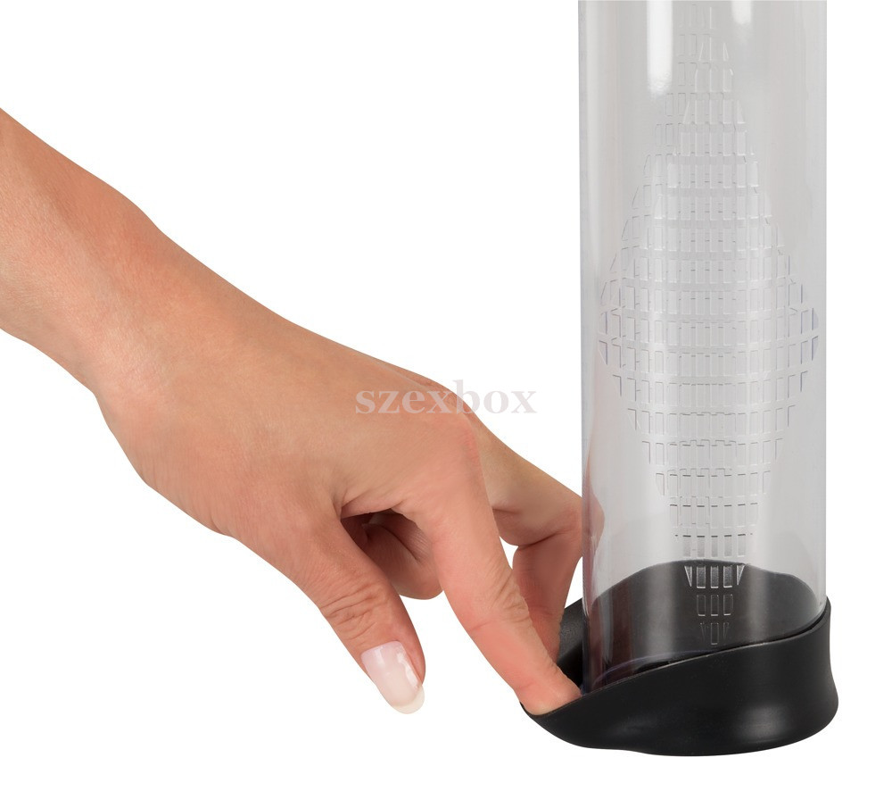 Egy péniszpumpa megerőltető kézimunka nélkül, digitális kijelzővel felszerelve!Beépített akkumulátorral rendelkező Mister Boner Workout - péniszpumpa kellemes szívóhatással, egyszerűen, gombnyomásra, automatikusan!A péniszpumpa segítheti az erek tágulását, így az erekció elérését, valamint rendszeresen, kúraszerűen használva, akár maradandó pénisznövekedés érhető el vele.Az eredmény könnyen nyomon követhető, az áttetsző henger oldalán található méretskála segítségével.Az áttetsző műanyag vákuumhenger, puha, rugalmas, levehető, szilikon mandzsettával készül és egyszerűen, gombnyomásra működő szívó hatással, 4 erősségi szinten.A henger oldala barázdált (méretskála jóvoltából), így csúszásmentes fogást nyújt.A vákuum megszüntetése is könnyedén, gombnyomásra történik (mínusz gomb hosszan lenyomva tartva).Vezérlés:Plusz gomb (START): egyszeri lenyomásával kapcsolható be a készülék, újból lenyomva elindul a szívás - a vénák megtelnek vérrel, a hímtag láthatóan duzzadtabb, nagyobb, merevebb leszMínusz gomb (STOP): egyszeri lenyomással csökkenthető a szívás erejePlusz gomb (START): egyszeri lenyomásával tovább fokozható a szívás ereje 4 erősségi szintenValves: vákkum kiengedő gomb (hosszan lenyomva tartva teljes kiengedés)Digitális kijelzőn: nyomon követhető a szívó hatás időtartama és a negatív nyomás mbar-ban.