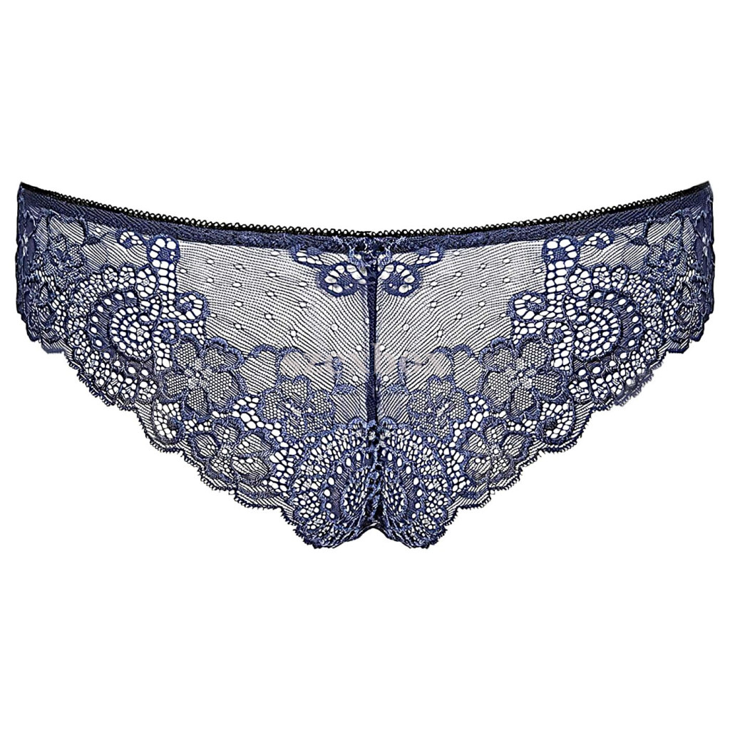 • A virágmintás csipke eleganciája kék árnyalatban igazán különlegessé teszi ezt a modellt.
