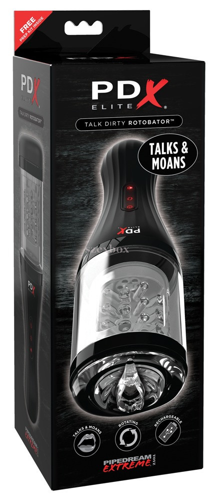PDX Elite Rotobator izgató műpunci maszturbátor, mely körbe-körbe forog léceden, közben piszkos szavakat és érzéki nyögéseket hallatva, kompakt méretben!Felizgat, ha kéjes nyögéseket és durva szavakat hallasz visszaigazolásként arra, hogy mennyire jó vagy az ágyban?!