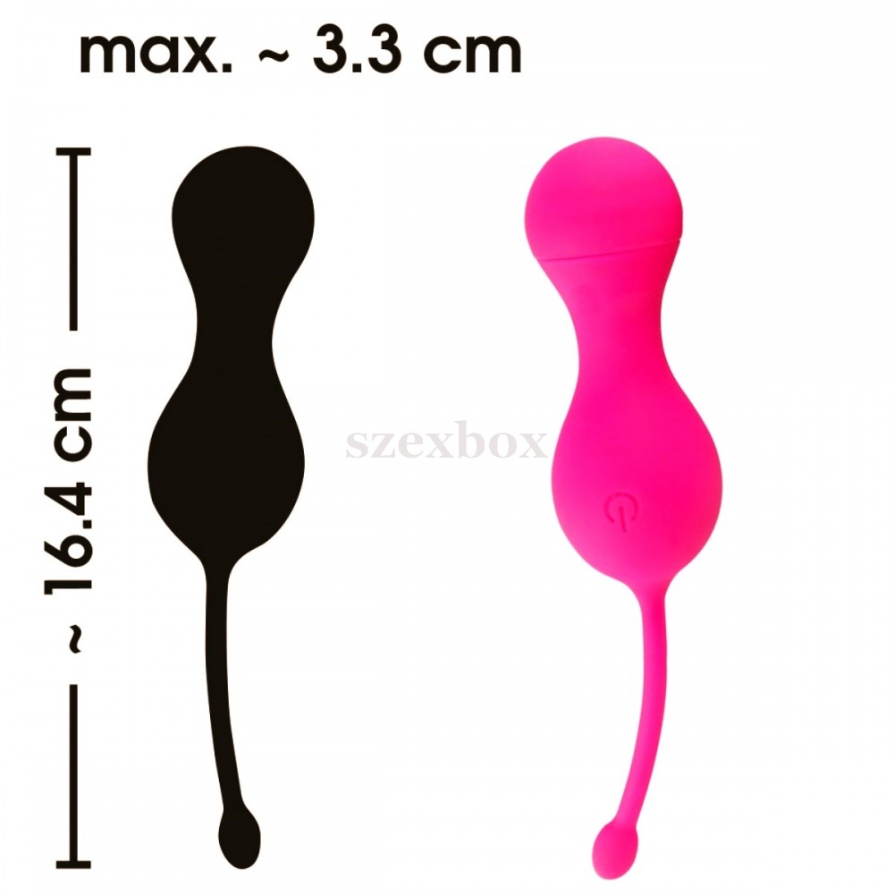 Tulajdonságok:-letisztult, elegáns dizájn-lekerekített, dupla golyós forma-intenzív hüvelyi stimuláció-biztonságos kihúzó-extra erős, de halk motor-zajkibocsátás kevesebb, mint 50dB-10 rezgésmód-vezeték nélküli távirányító-egyszerű vezérlés-újratölthető akkumulátor-környezetbarát kivitel-teljes hossz (kihúzóval együtt): 16,4cm-átmérő: 1,5-3,3cm-pink szín