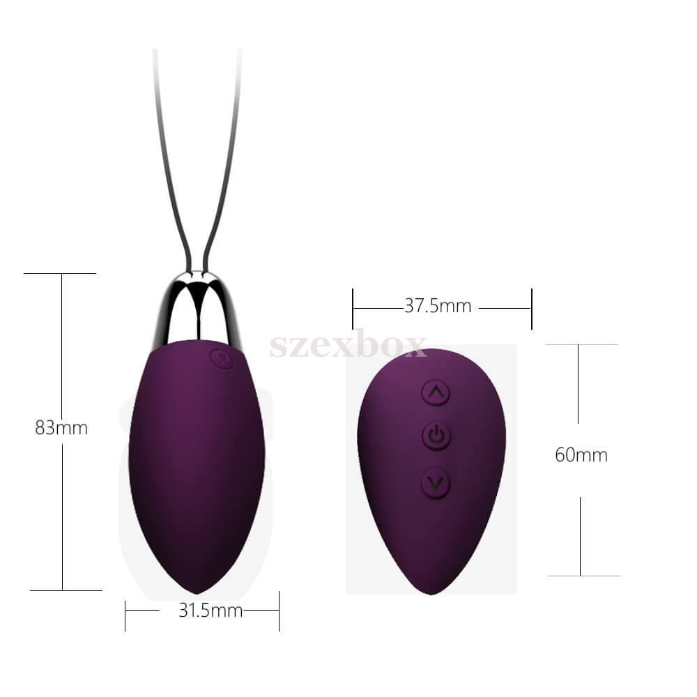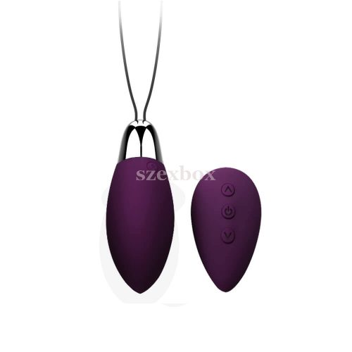 Egyszerű, rendkívül elegáns, letisztult formavezetésű, maximálisan bőrbarát és környezetbarát anyagok felhasználásával készülő vibrációs tojás, újratölthető akkumulátorral és rádiós távvezérlővel.Teljesen sima felszínnel, kellemes, bársonyos tapintással.Nagy teljesítményű, de viszonylag halk, diszkrét motorral.A vibráció egyszerűen vezérelhető 11 különböző ritmusban, a csepp formájú távvezérlőn található gombok segítségével, vagy a tojáson.A kényeztető mérsékelten vízálló, így egyszerűen tisztítható.Tulajdonságok:-letisztult, elegáns dizájn-csúcsos, tojás forma-vezeték nélküli távvezérlő-erős, de halk motor-11 rezgésmód-3 gombos vezérlés-bőrbarát anyag-újratölthető, Lithium-Polymer-es akkumulátor (120mAh)-mérsékelten vízálló, könnyen tisztítható kivitel - IPX6 (erős vízsugár ellen legalább 3 percig védett)-tojás mérete: 8,3 x 3,15 x 3,15cm-tömeg: 55g-lila színAnyaga: ABS, orvosi minőségű Szilikon (EU-rendeletnek megfelelő, phthalát-mentes).A csomag a töltéshez szükséges USB-kábelt tartalmazza.TIPP: A termékhez kizárólag vízbázisú síkosító használata javasoltA távirányító 1db 27A (12V-os) elemmel működik, amit a csomag tartalmaz.Működés:A termék üzembe helyezéséhez a tojáson található gombot és a vezérlőn található középső gombot is hosszan le kell nyomni, amíg világítani nem kezd. Ezt követően a rezgés már vezérelhető a távirányítón található nyilas gombok segítségével.A terméken van egy kis DC felirat egy kis perforált körrel, oda kell bedugni a töltő csatlakozót.