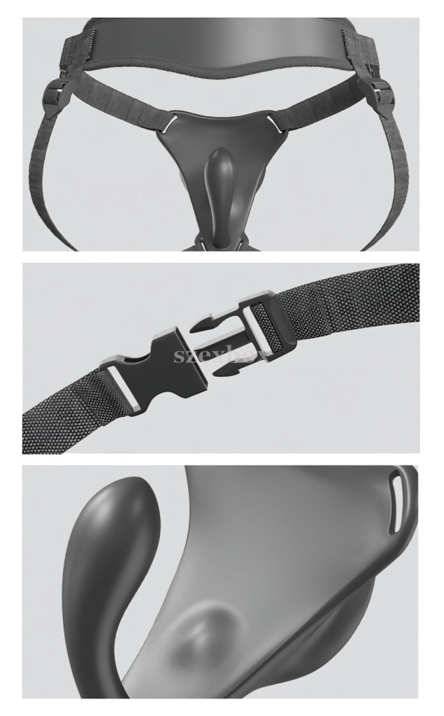 clip-on bottom with support platformcan be used with a suction cup dildoslightly upward support platformvibration designwireless remote controlbuilt-in inward-facing vibratorbuilt-in battery10 vibration modes100% waterproof - IPX7: up to 30 minutes, max. up to 1m depth (bottom)100% waterproof – IPX4: protected against splashing water from all directions (remote control)charging time: 120 minutes (bottom)charging time: 60 minutes (remote control)operating time: 60 minutesadjustable hip strap: from 61 to 137 cmfront triangle dimensions: 17 x 14.2 cminsertable length: 10 cmsupporting platform diameter: 9.7 cmfor dildos with a suction cup diameter of max. 8.6 cmcolor: blackweight: 390 gmaterial: Silicone, ABS, Polyamide (EU-compliant, phthalate-free)
