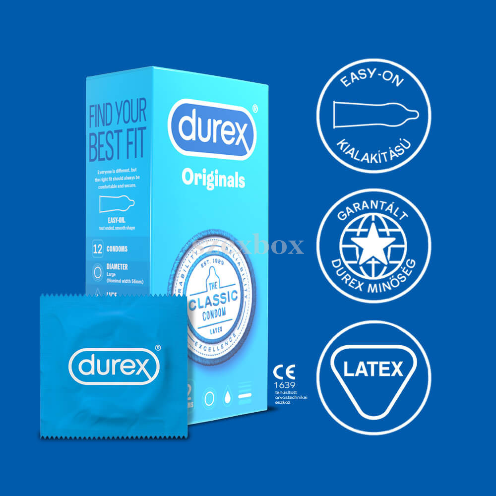 High-quality, classic, colourless, 12pcs fully translucent condoms, straight from Durex!Easy-on design for a perfectfit and easy fitting.Condoms with flatteningand secure semen reservoir, 12pcs pack.Material: natural rubber (latex). Length: 195mm.Thickness: 0.065mm.Diameter: 56mm.