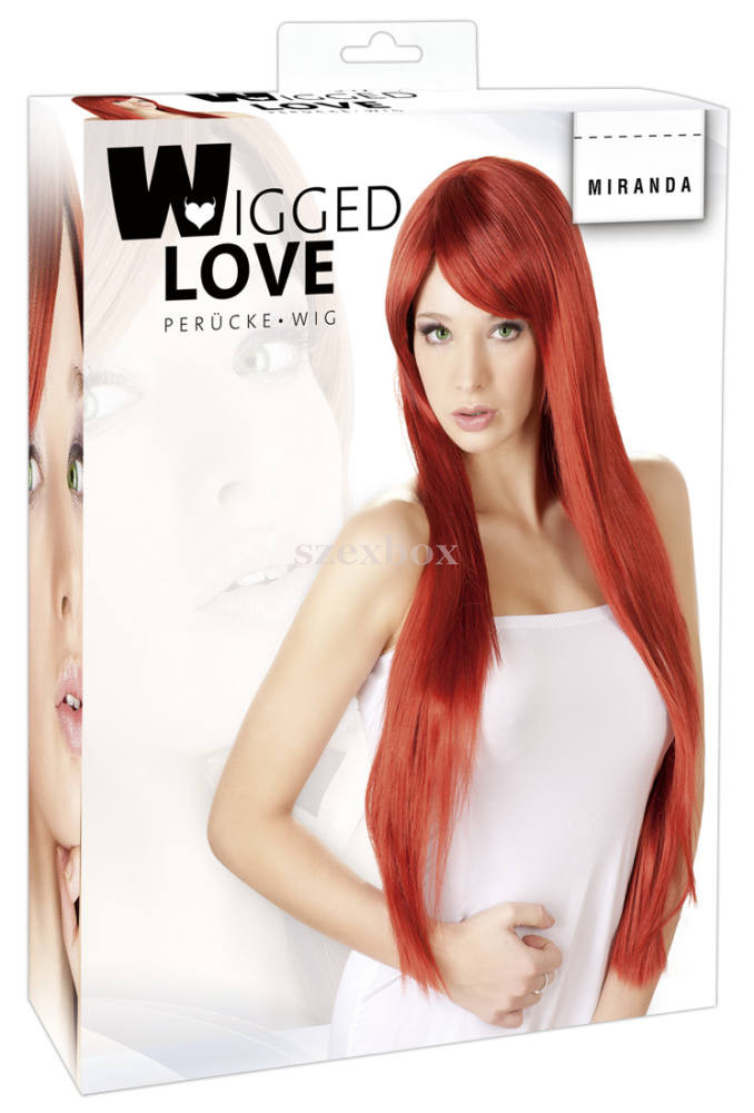 Extra-long, bright red wig with bangs and step cutWig looks, feels and falls like real hair