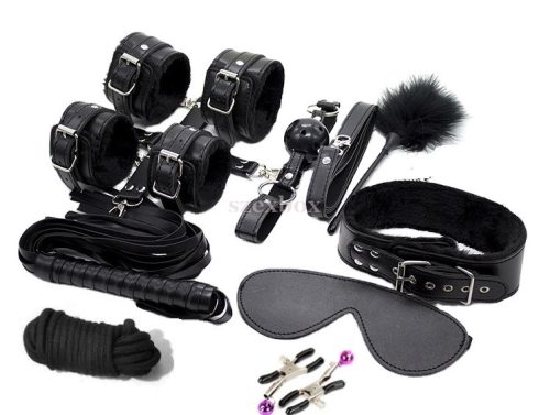 The perfect kit for BDSM toy loversHigh quality yet affordable products await you in this kitMade with quality materials - set is made from strong tensile strengthSet includes everything you need to explore pleasure, from the handcuffs for bondage to the leash that is also ideal for role playHandcuffs and collar are covered inside with soft, furry brass to make penance truly enjoyable