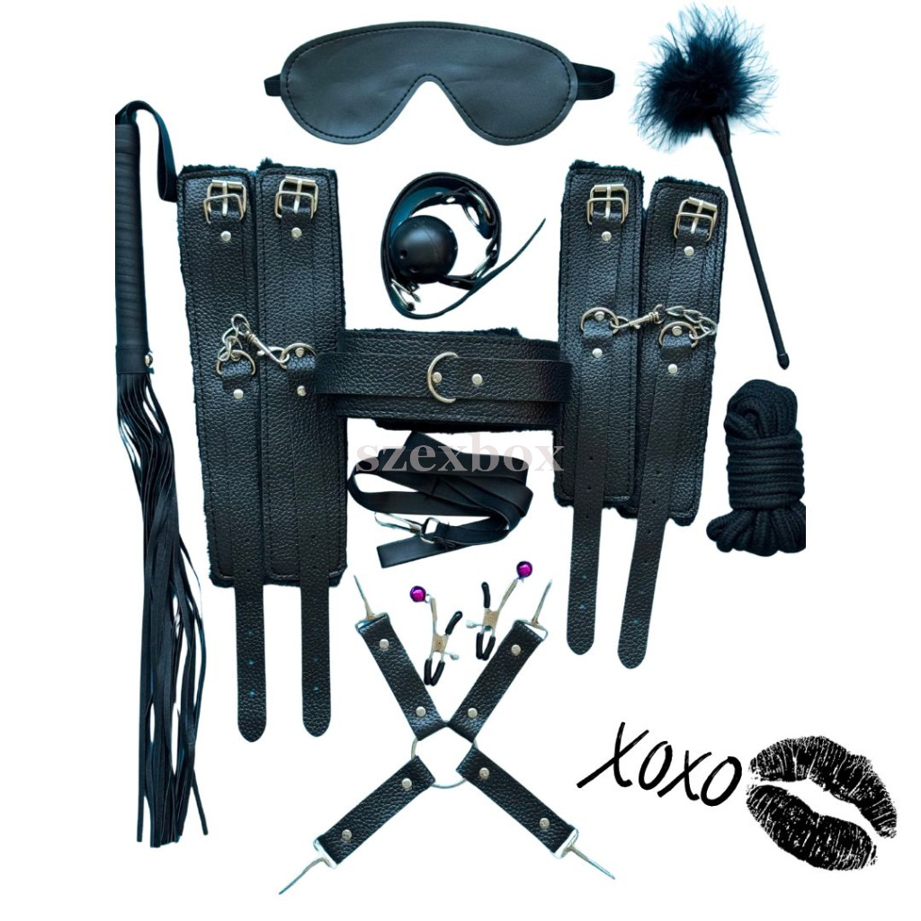 Nipple clamps: you can adjust how tightly the clamps hug the nipple with the small screw on the clamp.Caress, whip, spank: pleasure or punish your partner as long as you like!Bondage rope. You can tie his hands, feet or even his whole body in a bondage bondage!Handcuffs: handcuffs are adjustable in size with metal buckle and can be attached to each other with a small carabiner chainCollar: adjustable in size with metal buckle, with leash attachmentMuzzles: adjustable in size with metal buckleLeash: attached to the collar, you can lead your beloved and whip him if he doesn't obey