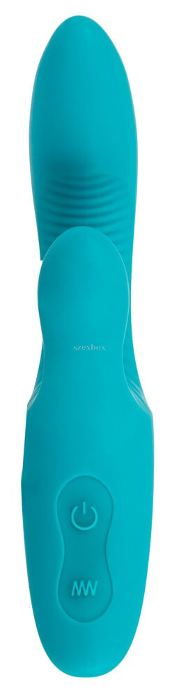 High-quality rechargeable vibrator with a solid frame, silky feel, made of maximum skin-friendly silicone, with soft curves and a curved shape.Special two-branch design that allows you to massage the clitoris and vagina at the same time. Thevibrator surface is equipped with massage folds in the stem bend and on the clitoris stimulation arm, which allows for even more intense pampering.Features two powerful but quiet motors. One motor is located in the stiffer stem and the other in the flexible clitoris stimulation arm. Thevibration can be adjusted in 7 different modes. Switching on and off and switching between vibration modes can be controlled by separate push buttons.Features:-hypoallergenic material-silky touch -exclusive, modern design-both-branch design -sliding stimulation -massaging, pleated surface -USB rechargeable battery -two powerful but quiet motors -7 vibration modes-2-button control-full length: 18,4cm -insertable length: approx. 9,5cm -maximum diameter: 3,1cm-clitoral arm length: 4,5cm-clitoral arm diameter: 2,4cm-in turquoise colourMaterial: ABS, PU coated, Silicone PU coated (EU compliant, phthalate free).USB cable for charging included in the package.