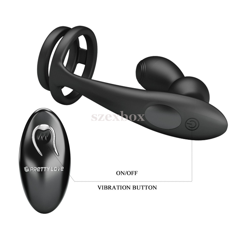 prostate stimulating anal vibrator and penis ring in one, which holds the penis rigidly while providing an intense prostate massage, and thanks to the radio remote control, you can even let your lover control your desires!