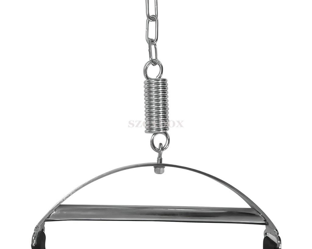 The SexMAX Multi Vario is a spring-based, two-person sex swing with a load capacity of up to 150 kg. The structure includes galvanized metal components—spring, carabiner, and chain—ensuring secure attachment to a ceiling mount or door frame.