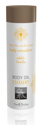 Luxurious massage oil with sweet vanilla flavour and fragrance, straight from HOT Shiatsu! TIP!For sweetening oral sex.For relaxing, stress-relieving massages.For relaxing tired muscles.For erotic attunement.For romantic foreplay.For complete body care after bathing.Thanks to its nourishing, moisturising ingredients, it is gentle on the skin, moisturising and pampering.How to use:When massaging, just place a small amount of oil in the palm of the hand, so that it is not too cold, then massage gently into the skin and involve the tongue in the pampering. Let the sensual, sweet taste and smell of vanilla captivate you.Features.