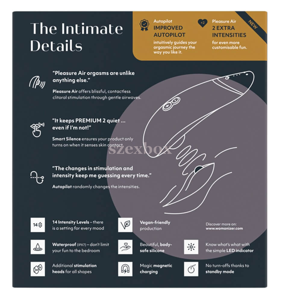 Customers search for this product using the following terms:Womanizer Premium 2 black | clitoral stimulator | Pleasure Air technology | luxury female vibrator | touchless stimulator | waterproof clitoral stimulator | premium sexual wellness device | female intimate massager | Womanizer Premium 2 Pleasure Air stimulator | touchless clitoral stimulator with 14 levels | waterproof luxury clitoral stimulator for bath | Womanizer stimulator with Autopilot function | Smart Silence technology vibrator | premium female intimate device with long runtime | body-safe silicone clitoral stimulator | Womanizer Premium 2 reviews and features