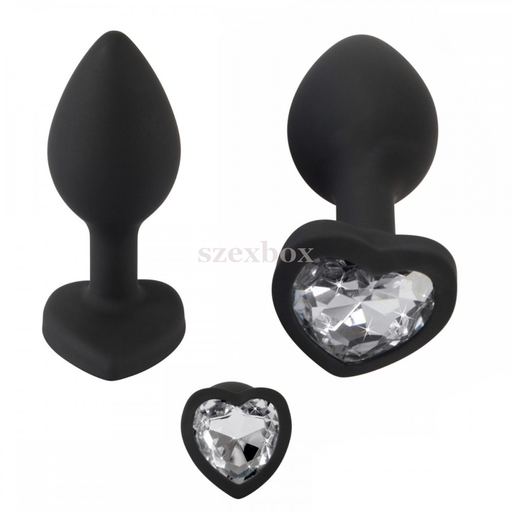 Silicone Butt Plug - white stone heart-shaped anal dildo (black)Ideal for allergy sufferers, a medium sized dilating anal plug with a sparkling stone, like a beautiful piece of butt jewellery!Why is it good?