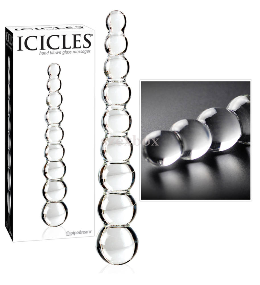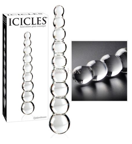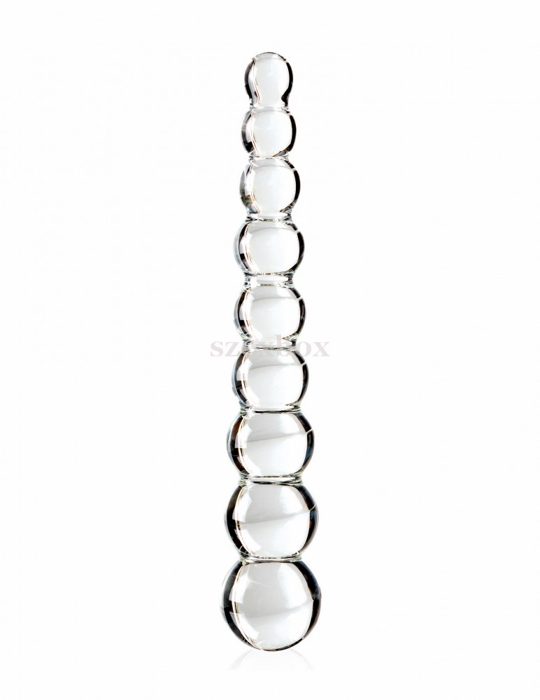 Kiváló minőségű, fúvott, vastag üvegből készült látvány dildó, áttetsző színben, gyönyörű gömbös(9db), stimuláló felszínnel. Kialakításának köszönhetően, akár mindkét vége használható. Akár anális, akár vaginális játékokhoz. Maximálisan bőrbarát, szagtalan, hypoallergén és nagyon higiénikus, ugyanis könnyen tisztítható,akár mosogatógépben is mosható. Az érzéki hatást még tovább fokozhatjuk, ha hűtőben lehűtjük, vagy forró víz alatt felmelegítjük.Tulajdonságok:-műalkotásszerű kivitel-hypoallergén-bőrbarát anyag-könnyen tisztítható-mosogatógépben mosható-szagtalan-Teljes hossza: 22,5cm-Átmérő: 1,5-3,7cm