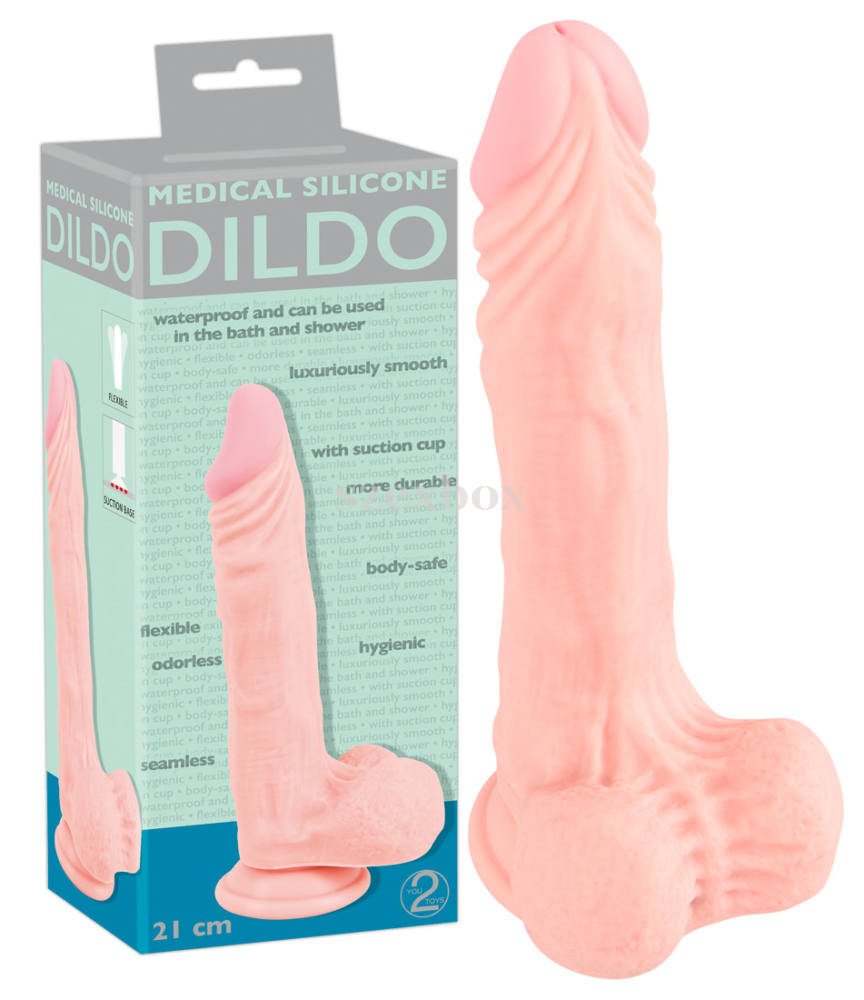 A hosszabb méretek kedvelőinek tökéletere formált, élethű anyagú műpénisz, akár az igazi!Nagyon természetes érzést keltő, kellemes, puha tapintású, mégis jó tartású, rugalmas anyagból készülő dildó, rendkívül aprólékos kidolgozottsággal.Különlegessége, hogy kívül finom puha, belül mégis megvan a megfelelő tartása, így nem nyeklik össze-vissza, mégis megfelelően rugalmas.Aprólékos kidolgozás jellemzi, így minden egyes apró momentum, véna olyan, mintha tényleg igazi hímvessző lenne.Ínycsiklandó, formált, hegyes makkal látták el, mely könnyedebb behatolást tesz lehetővé. Ezen felül valódinak ható herékkel és erős tapadókoronggal készül, melynek köszönhetően szinte minden sima felületen (pl.: csempe, lakkozott fa, stb.) megtapad.Az erezett felszín pedig plusz extra stimulációt nyújt.Tulajdonságok:-hosszabb méretek kedvelőinek ajánlott-orvosi minőség-érzékenyek is használhatják-szagtalan-higiénikus, tartós-könnyen tisztítható-vízben is használható, nem tartalmaz elektromos részeket-realisztikus anyag-tömör és hajlékony egyszerre-tökéletesen élethű forma-erős tapadókorong-erezett felszín-teljes hossz(tapadókoronggal együtt): 21,5cm-hossz(tapadókorong nélkül): 19,5cm-behelyezhető hossz: 16,5cm-átmérő: 3,2-3,8cm-natúr színAnyaga: orvosi Szilikon (EU-rendeletnek megfelelő, phthalát-mentes).TIPP: a termék síkosításához kizárólag vízbázisú síkosító használata javasolt, egyéb más készítmények károsíthatják a termék anyagát.