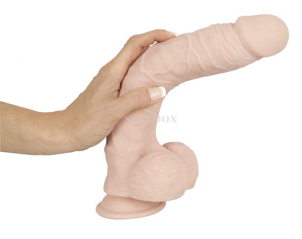 Ha a nagy méretek kedvelője vagy, akkor ez a műpénisz ideális választás számodra.Vastag, teljesen kitöltő, átmérőjének és hosszú kialakításának köszönhetően, mellyel a mélyre ható kényeztetés is garantált.Nagyon puha, mégis jó tartású, realisztikus, hajlítható, selymes tapintású anyagból.Akár az igazi hímvessző, formás makkal készül, kerekded herékkel és erezett felszínnel.Erős tapadókoronggal is ellátták, így a sima felületen megtapad (csempe, járólap, lakkozott fa, stb.) így változatosan használható.A termék nem tartalmaz elektromos részeket, így vízálló, a kádban, vagy a zuhany alatt is használható, könnyen tisztítható.Tisztítást követően érdemes babahintőporral lekezelni, hogy az anyaga megtartsa kellemes tapintását és tartósságát.Tulajdonságok:-élethű anyag-realisztikus pénisz forma-erezett felszín-puha tapintás-nagyon hajlékony kialakítás (max. 30 fokban)-erős tapadókorong-vízálló, könnyen tisztítható-markáns méretek-teljes hossz (herékkel és tapadókoronggal együtt): 29,5cm-behelyezhető hossz (herékig): 22cm-átmérő: 5,2cm-tapadótalp átmérője: 7cm-tömeg: 660g-natúr színbenAnyaga: TPE (EU-rendeletnek megfelelő, phthalát-mentes).TIPP: a termék gyárilag púderezett, síkosításához kizárólag vízbázisú síkosító használata javasolt.