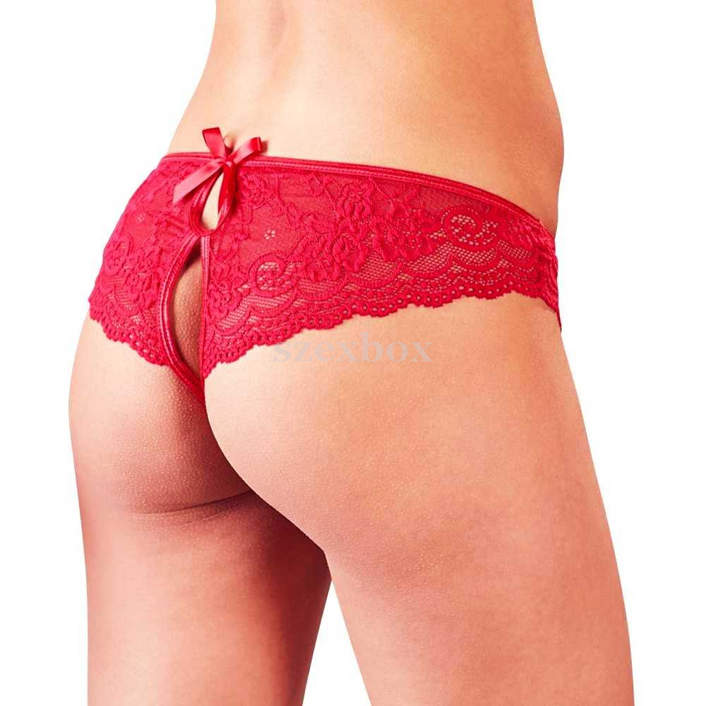 Puha, rugalmas csipkéből készülő női alsó, a szeméremnél és a popsinál is teljesen nyitott fazonban