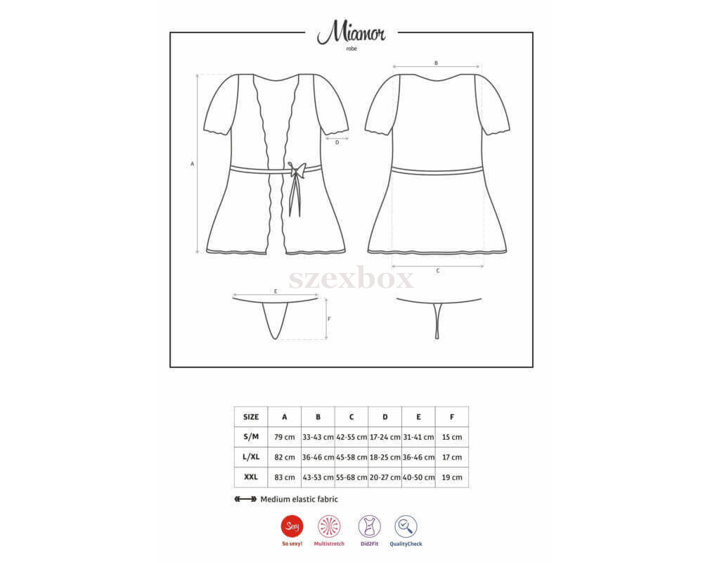 Elegánsan szexi, puha köntös, lágy esésű, kiváló minőségű anyagból.Milyen előynöket nyújt majd a Obsessive Miamor Robe csipkés ujjú köntös tangával: