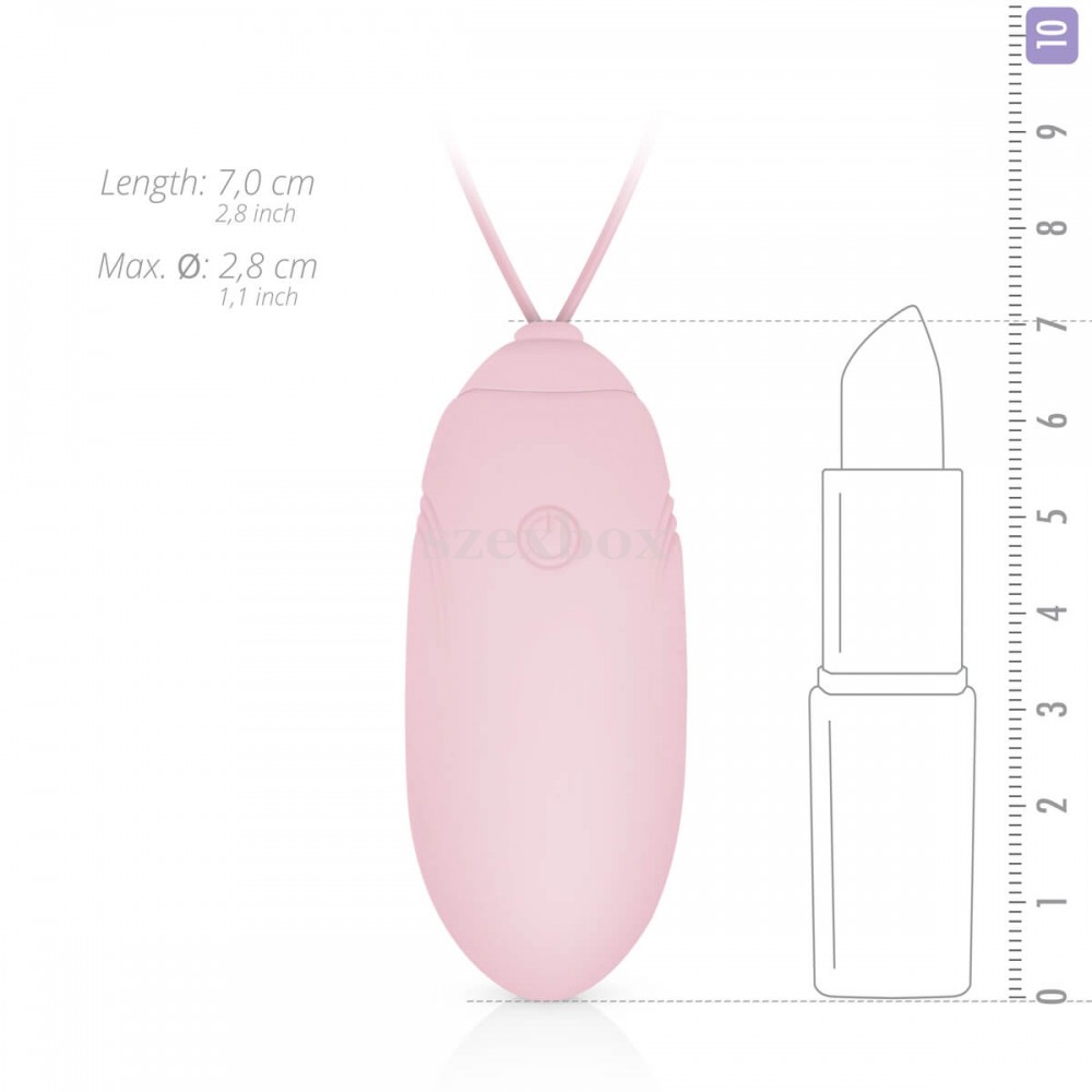 Tulajdonságok:-minőségi kivitel-letisztult, tökéletesen illeszkedő, tojás forma-hypoallergén anyag-bársonyos felszín-erős motor-USB-ről újratölthető akkumulátor-vezeték nélküli vezérlő - 10m-es hatótávval-10 vibrációs ritmus-egyszerű, egygombos vezérlés-diszkrét, csendes működés-mérsékelten vízálló, könnyen tisztítható kialakítás-teljes hossz: 16cm-behelyezhető hossz: 7cm-maximális átmérő: 2,8cm-tömeg: 40g-halványkék színben